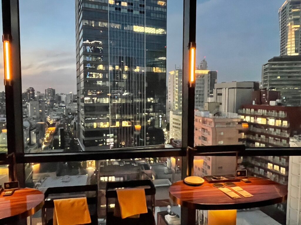 All seats are designed for two people, offering a panoramic view of the Shinjuku night skyline from any table. The seating arrangement is carefully planned to ensure privacy, making it easy to focus on each other.